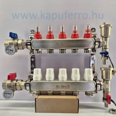 M-tech osztó-gyűjtő 1", áramlásmérővel, golyóscsappal, szerelt osztóvéggel, 5 körös, 3/4" eurokónuszos menettel