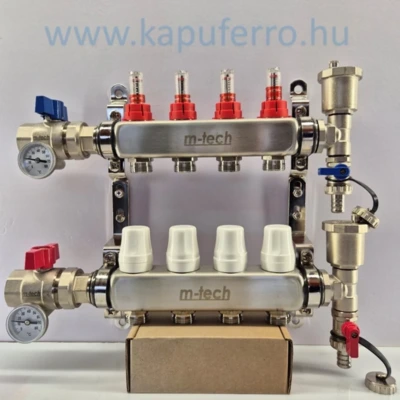 M-tech osztó-gyűjtő 1", áramlásmérővel, golyóscsappal, szerelt osztóvéggel, 4 körös, 3/4" eurokónuszos menettel
