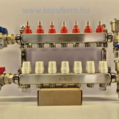 M-tech osztó-gyűjtő 1", áramlásmérővel, golyóscsappal, szerelt osztóvéggel, 7 körös, 3/4" eurokónuszos menettel